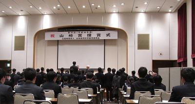 第35回山﨑賞に自然科学部より1グループの課題研究論文を応募し、受賞を果たしました。2月16日(土)には静岡県教育会館(もくせい会館)にて授賞式が行なわれ、研究チームの2年生2人で賞状と副賞をいただいてきました。また、表彰式の後には、受賞者を代表して、小学生から1名のお礼の挨拶、中学生、高校生の部から各1グループが受賞者を代表して研究の紹介を5分程度で行います。本校の受賞グループが、今年度の代表として研究の紹介を行いました。