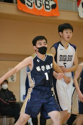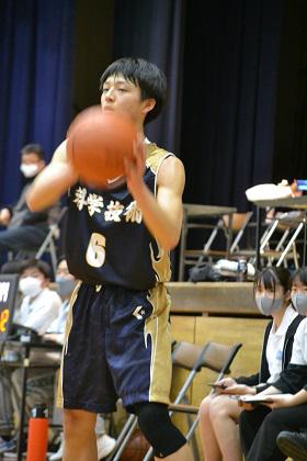 本校は静岡高校と全勝同士の対戦、一か月前に練習試合を行ったばかりで互いに手の内を知り尽くした対戦となりました。前半相手のインサイドを封じ切り、接戦のまま折り返しましたが、後半相手エースのドライブを封じ切れず惜敗、リーグ2位での決勝トーナメント進出となりました。