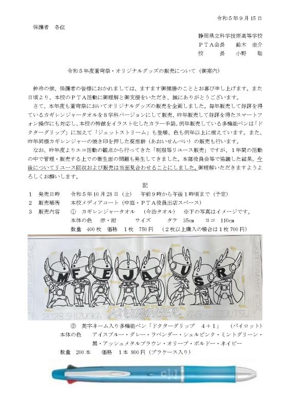クイズの正解者の皆様には、近日中に郵送にて記念品(本校オリジナルグッズ)を送らせていただきます。たくさんの御応募ありがとうございました。なお、正解者(当選者)の発表は商品の発送をもって代えさせていただきます。
