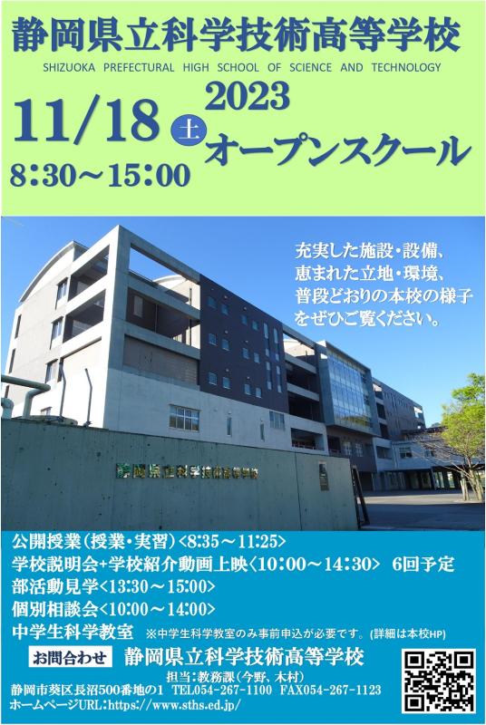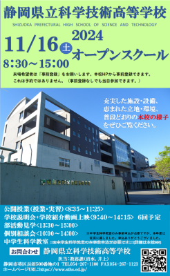 ★令和4年度 静岡県立科学技術高校オープンスクール受付について★