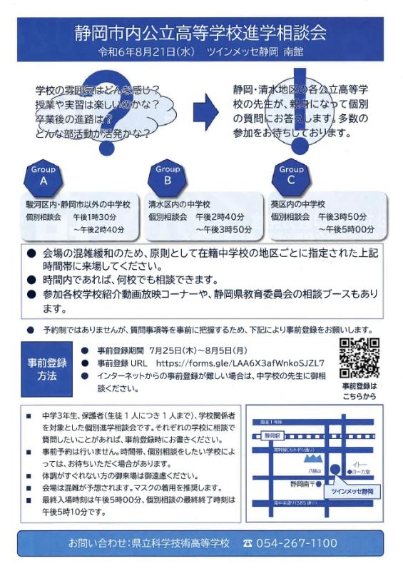 静岡県立科学技術高等学校 中学生1日体験入学 担当