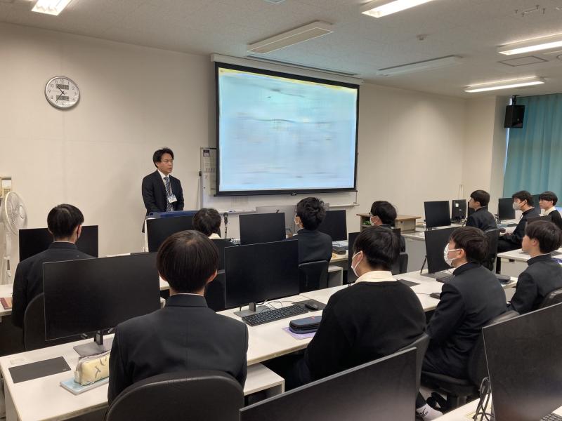 生徒たちはそれぞれ興味関心のある企業や大学の説明を、資料を見たり、メモを取ったりしながら真剣に聞いていました。