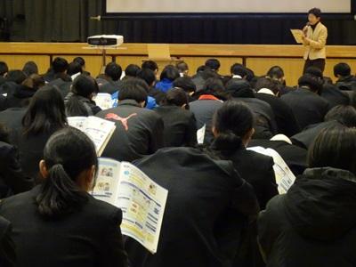 本校理数科では、1年で化学、生物を学び、物理は2年から学びます。講師の光野先生が微細な結晶の写真や図を多く見せていただき、テンポよくお話しいただいたので、生徒たちの理解が深まりました。ありがとうございました。