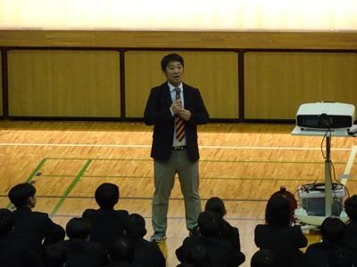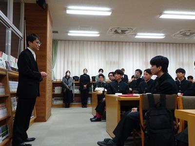 11月19日(金)理数科1年生を対象に、静岡大学工学部 電子物質科学科 光野 徹也 准教授による「微小な結晶の作製〜応用」をテーマに、出張授業が行われました。