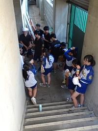 練習を終えてきた運動部の生徒たちも応援しています。