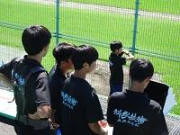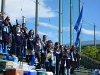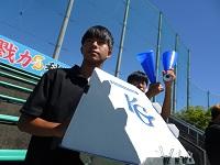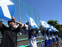 引退した3年生が応援しています。