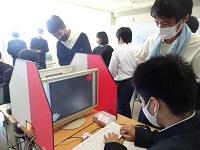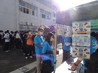 最初に、生徒昇降場の生徒会ブースでパンフレットを受け取っていただきました。