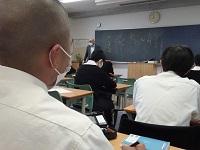 隣の教室では、今年夏に実施した「イングリッシュ サマー キャンプ」の研修参加者のプレゼンテーションが行われていました。この研修には、同窓会から、参加費用を補助していただいています。保護者の皆様をはじめ、同窓会の方々にお聴きいただきました。