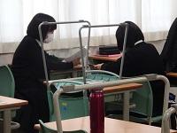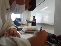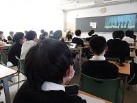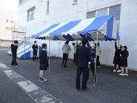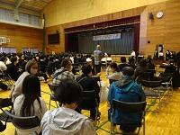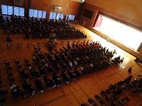 コロナ感染症対策のため、3年生は体育館で、1・2年生はライブ配信を教室で観ます。