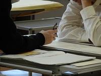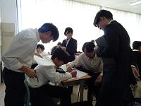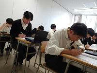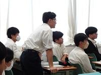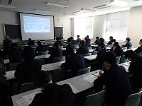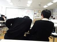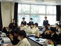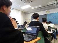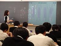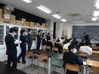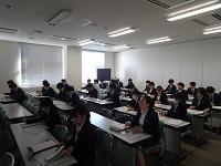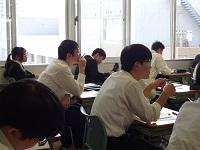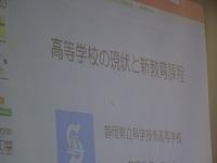 本校職員から、高等学校の現状と新教育課程、本校の概要、教育相談室の役割について講義を受けた後、授業を見学しました。