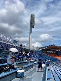 「2年生部員だけで行った応援も、初戦より遥かに自分たちで考えられた応援を展開出来るようになりました。試合は、初回に2安打で2点を先制。裏の相手の攻撃をダブルプレーで切り抜けたことで試合のペースをリードしたようです。ピッチャーの安池さんは丁寧に低めに球を集め、安定したピッチングでランナーを出してもゲッツーで切り抜ける等、強豪静清を4安打で完封しました。天気が心配されましたが、前回同様のかなりの猛暑でしたので、スタンド下に前員降ろすなどの休憩を挟みながら応援を乗り切りました。」