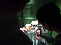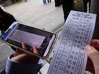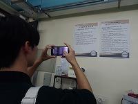 スマホでQRコードを読み込み、日本語に変換している生徒。