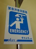 人体へ悪影響を及ぼす化学薬品を誤って浴びてしまったときに使うシャワーが設置されていました。