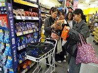 スーパーマーケットで、お土産用のお菓子を選んでいました。