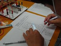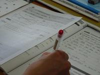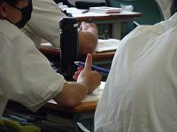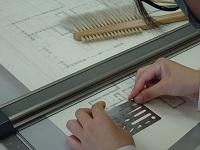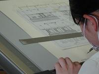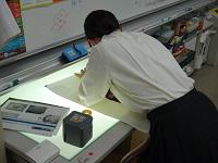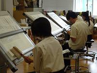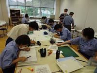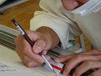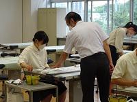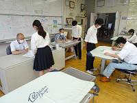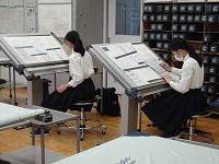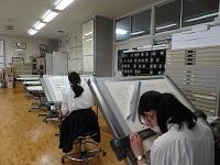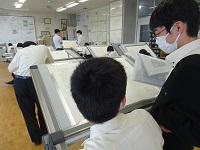 製図室では、先生に指導を仰いでいる生徒の姿がありました。