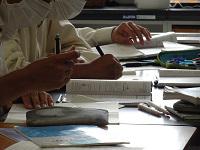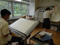 美術室では、建築系大学入試の過去問に取り組んでいました。