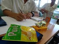 補食をとりながら頑張ります。