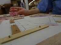 基礎や屋根などを分担して、建築模型を制作します。