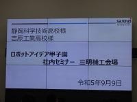 9月9日(土)、「ロボットアイデア甲子園」静岡中・東部大会に向けて「ロボットって何?セミナー&見学会」が、三明機工株式会社VRSC(バーチャルロボットソリューションセンター)で開催され、本校及び吉原工業高校の生徒たちが参加しました。