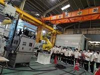工場に移動し、組み上げられたロボットシステムの実機を見学させていただきました。