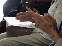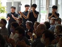 マンドリンの音色にうっとりしている様子でした。「長沼音頭」の演奏に手拍子が加わっていました。