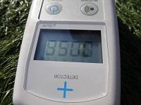 コロナ感染対策のため会場入り口に置かれた消毒液。