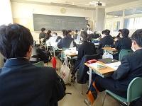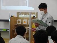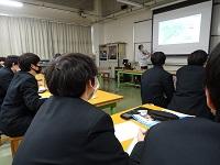 1月27日(金)7時限目、LHRの時間、工業科の3年生に講師を務めてもらい、1・2年生の教室でそれぞれの進路について報告を話してもらう進路学習を行いました。