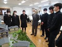 「第13回高校生の建築甲子園」に応募した建築デザイン科の生徒たちの作品が、ベスト11校に選ばれました。1月25日(水)、静岡県建築士会事務局長の川口様をはじめ3名の方々が来校してくださり、賞状と賞金、記念品を授与してくださいました。
