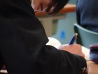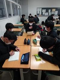 1月19日(木)放課後、バドミントン部の生徒たちが勉強会を行っていました。