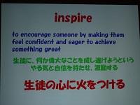 「人生最大の喜びは感動すること」「百見は一触に如かず」「生徒の心に火をつける」=Inspireなど、たくさんの刺激をいただき、早速実践していきたいと思いました。