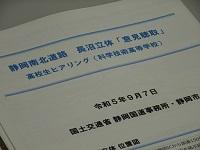 9月7日(木)1時限目、都市基盤工学科の生徒たちが、国土交通省静岡国道事務所・静岡市の担当者の方々から、「静岡南北道路 長沼立体 意見聴取」のための説明等を受け、ヒアリング回答を行いました。