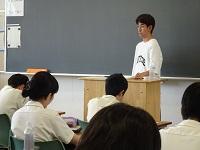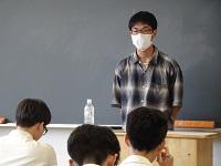今春、本校工業科を卒業して国公立大学に進んだ先輩たちが後輩のために駆けつけてくれ、進学に向けて、高校時代にどのように過ごしたか、進路実現に向けて努力したこと、また、大学において今どんな学生生活を送っているかなど、様々な話をしてくれました。