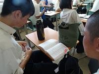今日は「教養力テスト」です。早めに登校して、試験対策の最終確認をしていました。