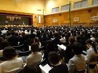 迫力ある演奏に、大勢の1年生が聴き入っていました。