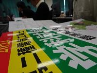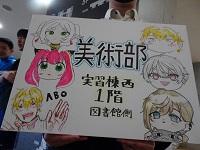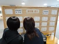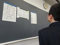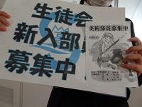 部紹介の掲示板の前で、どの部活動に入部するか考えていました。