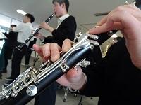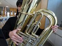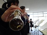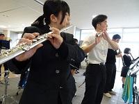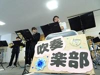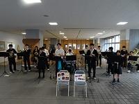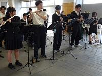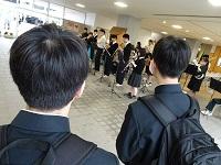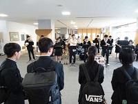 吹奏楽部が、生徒ホールで新入部員勧誘の一環として演奏を行いました。