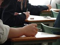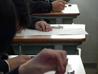 早めに登校して試験対策の最終確認をする生徒たち。