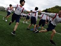 雨の中、濡れながら全力でランニングしていた生徒たち。