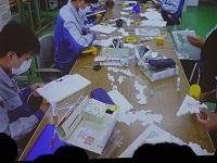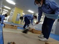 ロボット工学科3年生の教室では、有志生徒9名が、教室床の汚れを落とし、丁寧にワックスをかけてくれました。