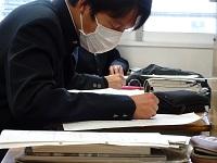 進路資料室で、今年本校に届いた求人票を調べて、進路実現のための準備を進めている生徒がいました。