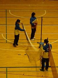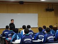 2月6日(水)夜、県スポーツ協会主催事業「バドミントン・アカデミー」が、このはなアリーナで行われ、本校バドミントン部の生徒たちが、ボランティアで子どもたちにバドミントンを教えていました。
