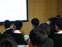 中部電力パワーグリッド株式会社で勤務されていらっしゃる本校1期生の2人をはじめ3人の本校卒業生の方々が講師を務めてくださり、系統運用、送電、変電、配電について、パワーポイントを用いて、技術の内容や会社の業務内容等を、大変わかりやすく説明してくださいました。