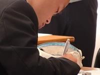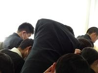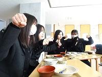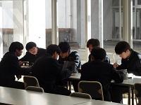 今日は3年生学年末試験の最終日です。試験対策最終確認の前に腹ごしらえして気合を入れていました。