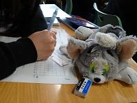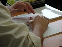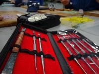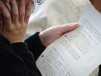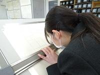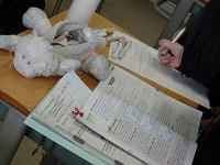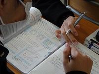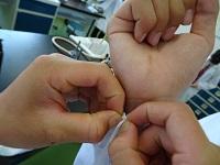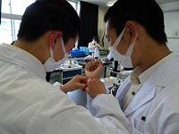 一年生の授業の終わり、まだ着慣れない白衣の袖口のひもをほどいてもらっていました。