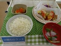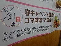 今日の科学技術高校食堂の日替わりランチは、今月のフェア最終日、「春キャベツと豚肉のゴマ味噌マヨ炒め定食」です。