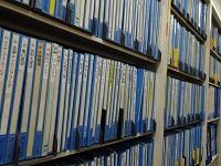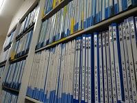 進路室では、過去の求人票を見ている生徒たちがいました。