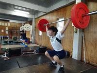 ウエイトリフティング競技でインターハイに出場する小野選手(機械工学科2年生)がスポーツ新聞の記者から取材を受けていました。