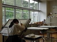 7月5日(水)放課後、建築デザイン科の生徒たちが製図に取り組んでいました。