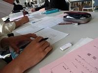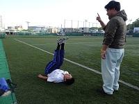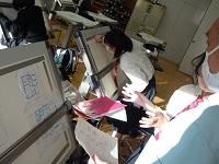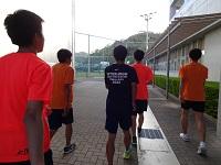 新入生部員たちが、ラケットの試打をして自分に合ったラケットを選んでいました。