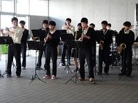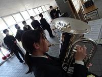 吹奏楽部が生徒昇降所でミニ演奏会を行っていました。